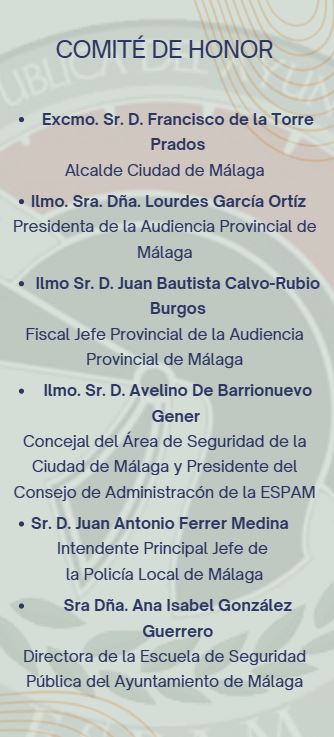 Comité de honor de las II Jornadas de Coordinación entre Admón de Justicia y Policía Local